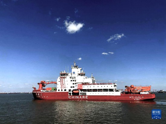 2020年11月10日,中國第37次南極科學考察隊乘坐“雪龍2”號極地科考破冰船從上海起航,奔赴南極執行科學考察任務,這是“雪龍2”號極地科考破冰船駛離碼頭。新華社發(中國極地研究中心供圖)